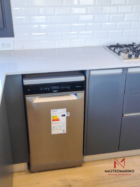 - Cocina semi integrada amplia con lavavajillas, horno y anafe a gas. Posee una mesada amplia con diversos y cómodos espacios de guardado. También cuenta con espacio para barra desayunadora.